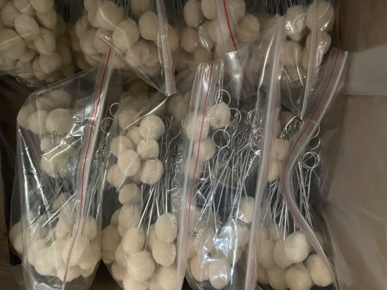 The material of the ball: the polyester ,the wool,normall the color is white,we also can dye the different color ,the red ,the blue ,the green or according to customed request.